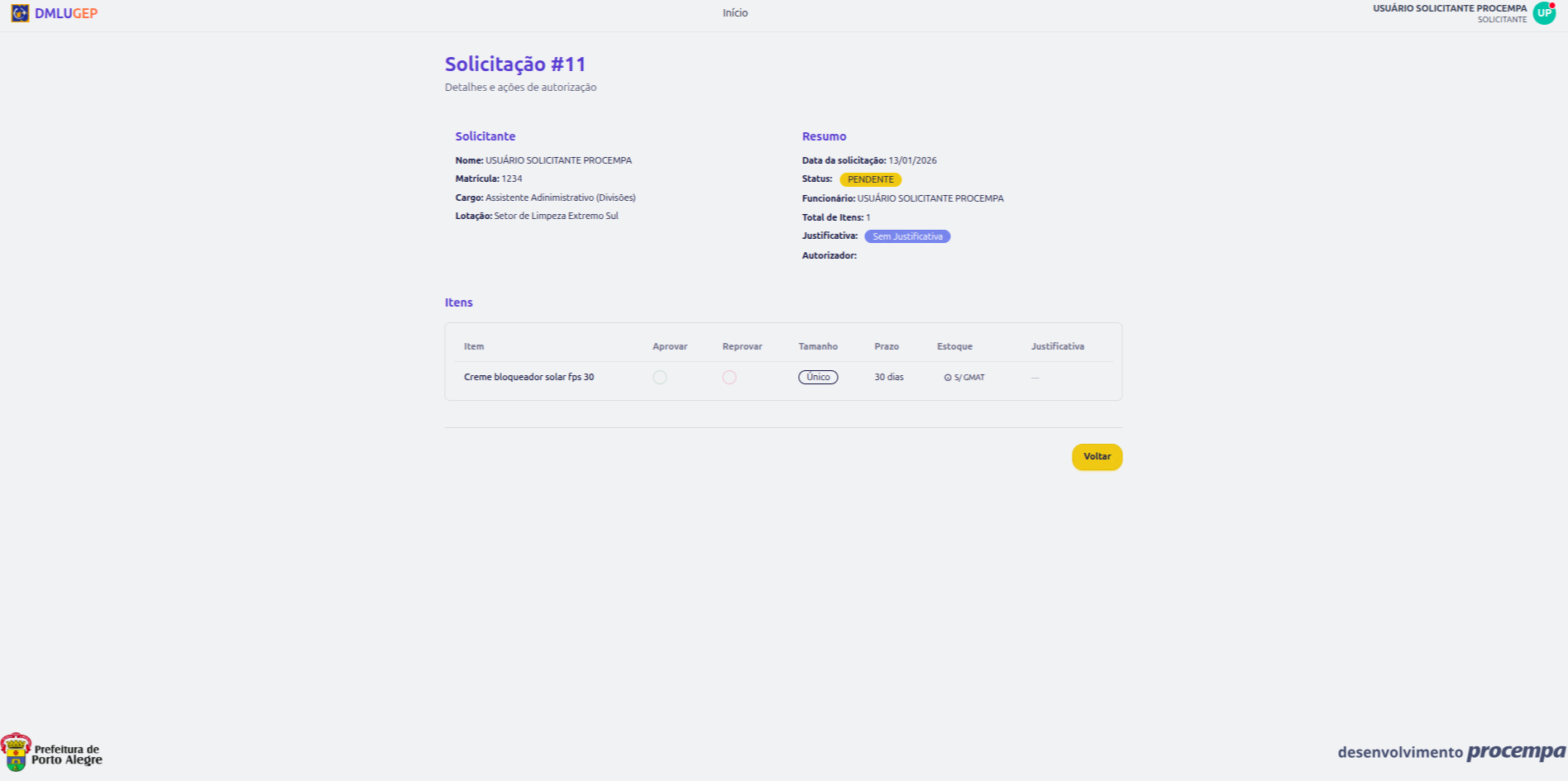 - Status (Pendente, Aprovado, Reprovado ou Entregue)