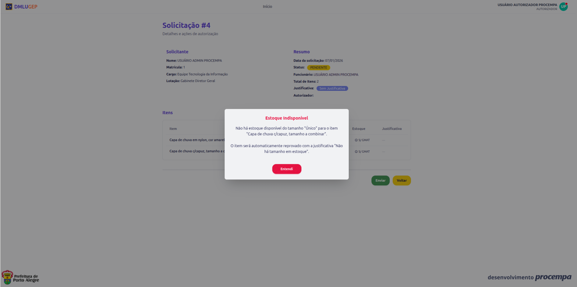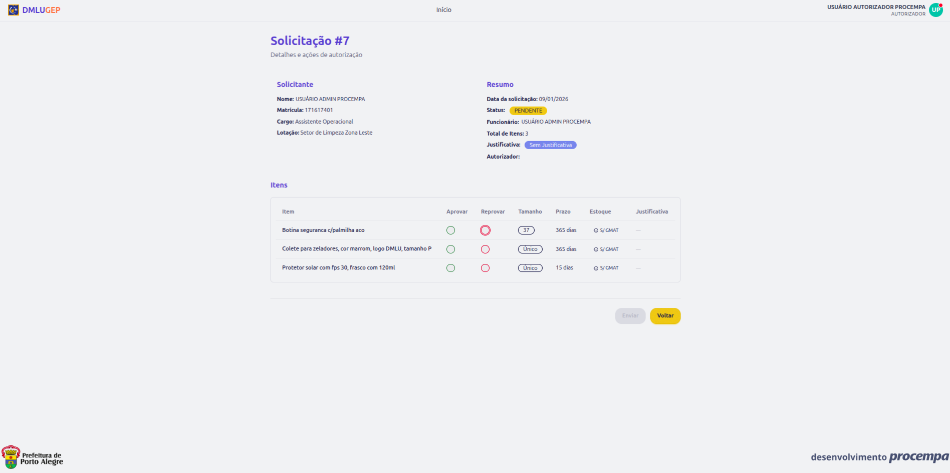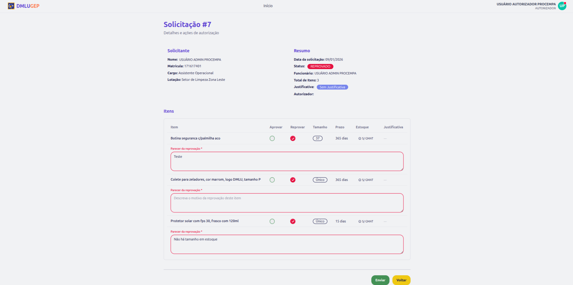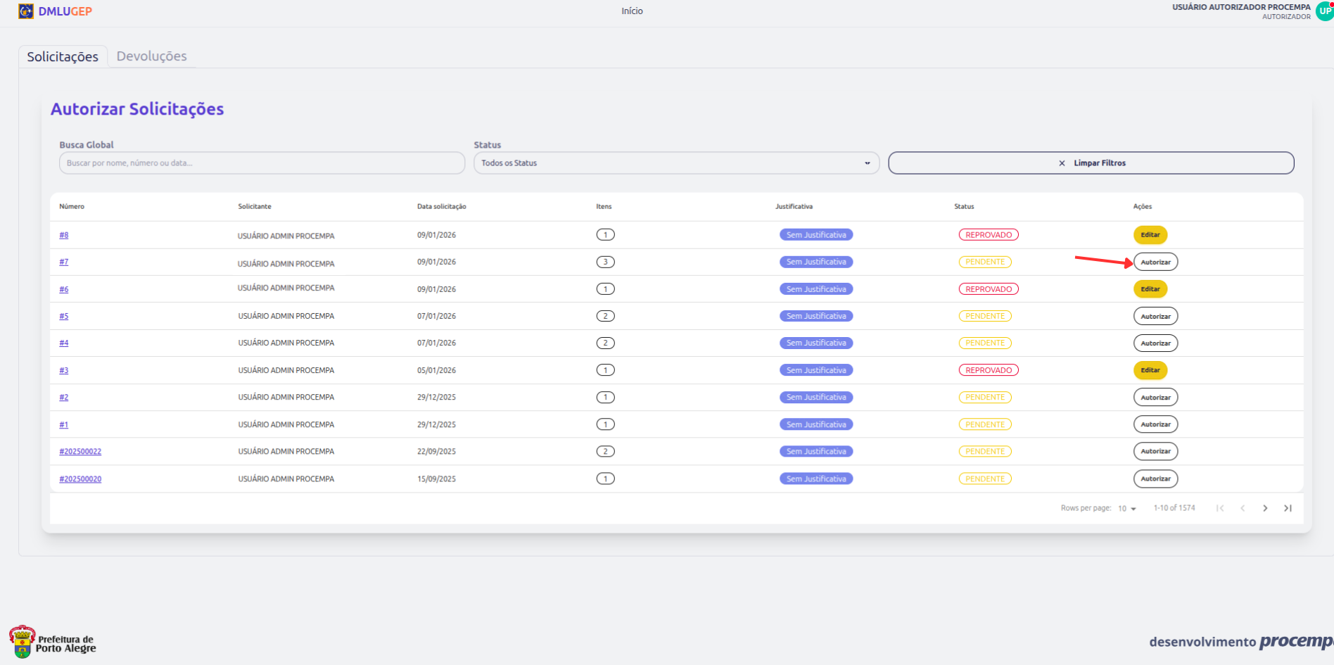 APROVAR OU REPROVAR SOLICITAÇÕES