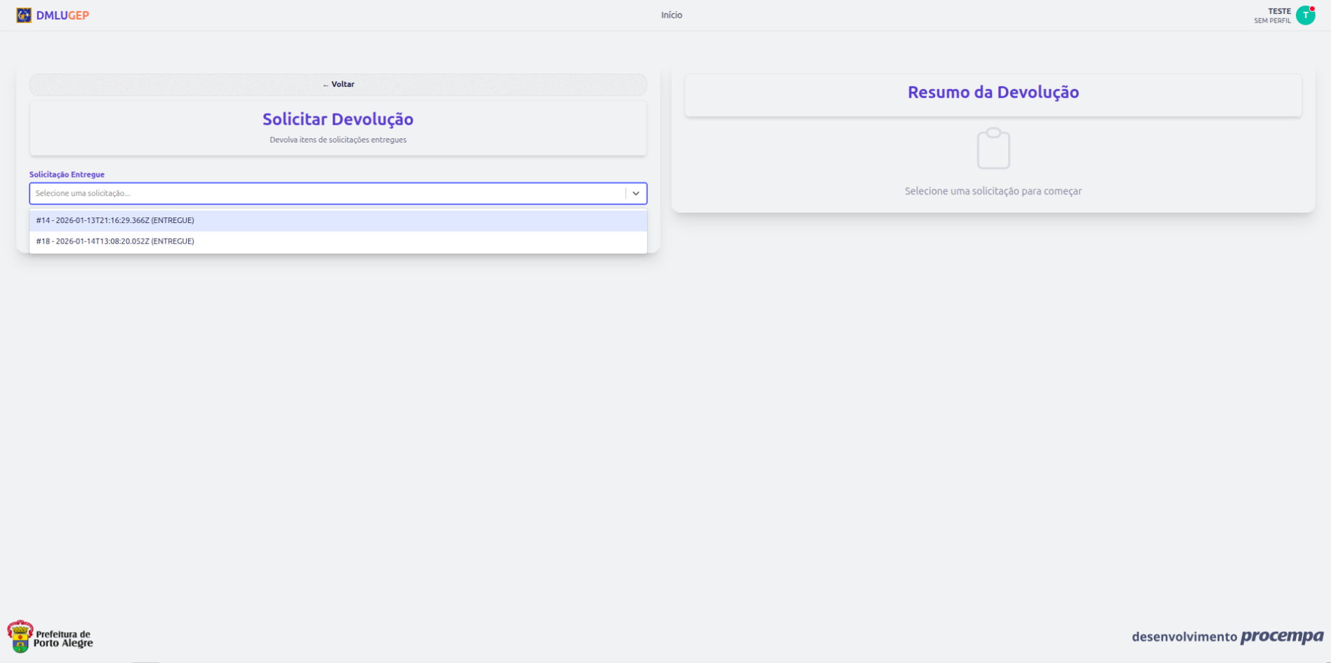 - Você será redirecionado para a lista de devoluções