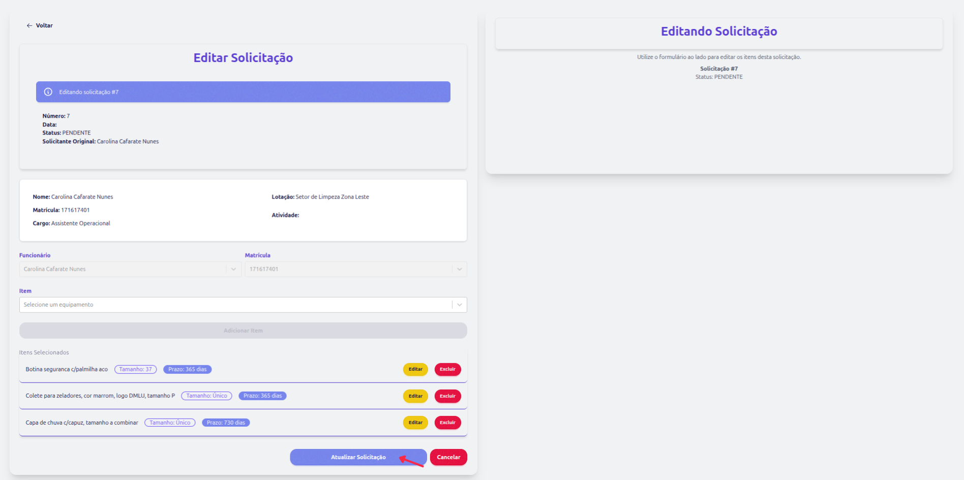 - Solicitações já aprovadas, reprovadas ou entregues não podem ser editadas