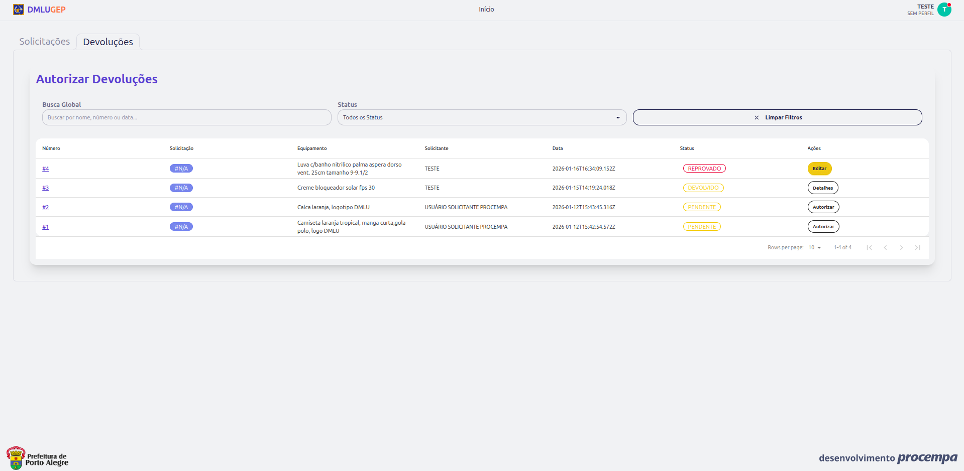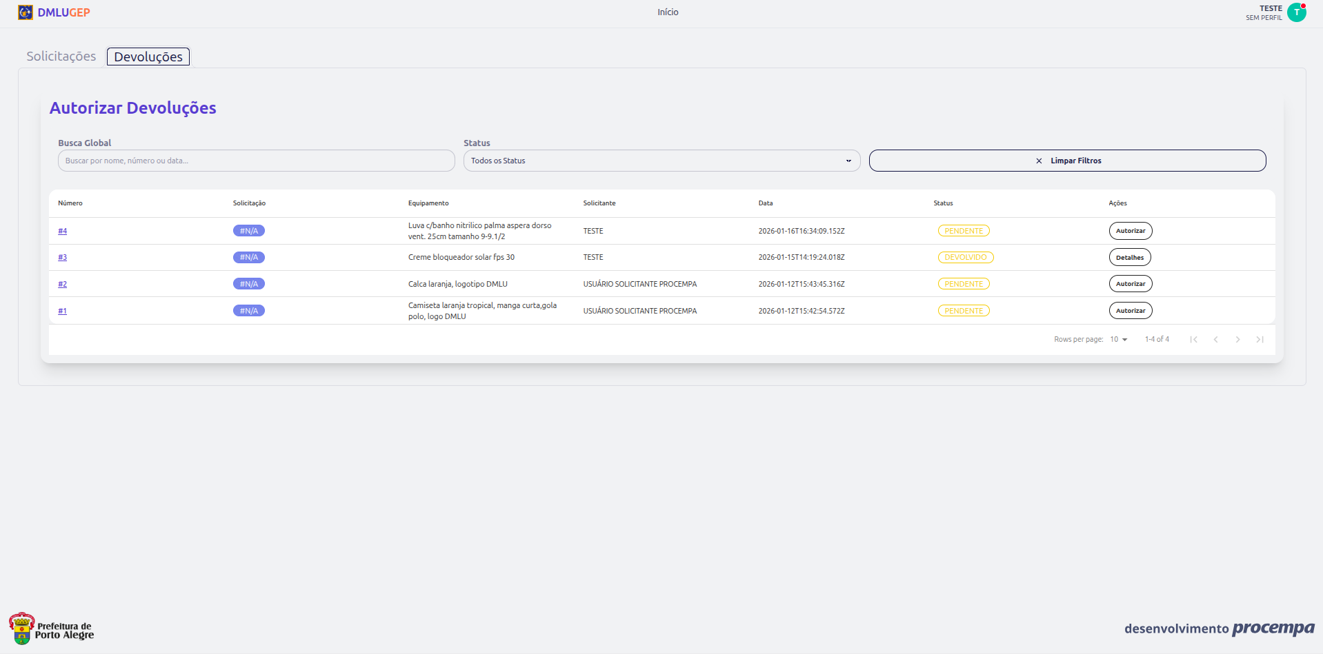 2. Após isso voce será redirecionado a aba de autorização de devolucao de equipamentos.