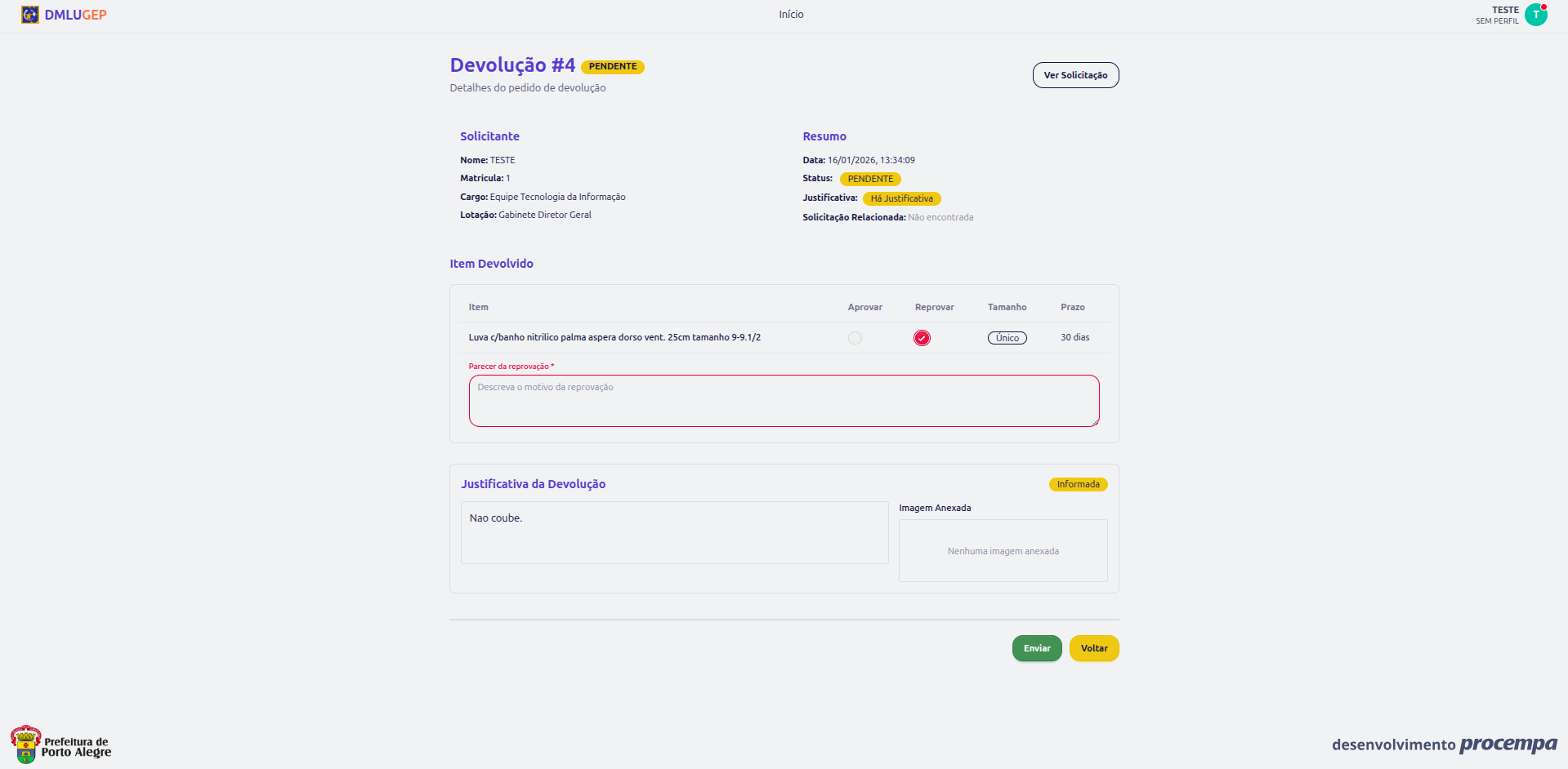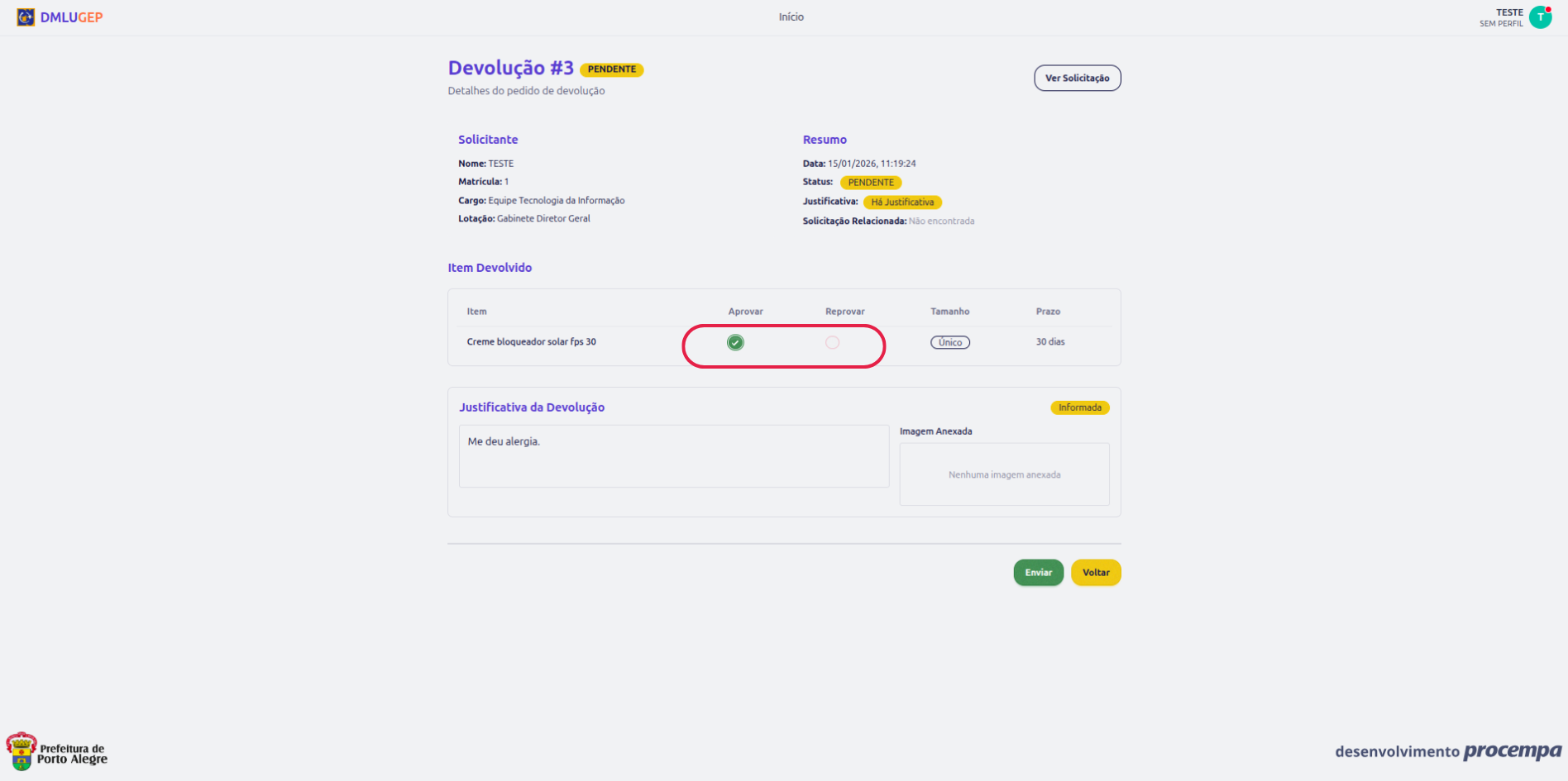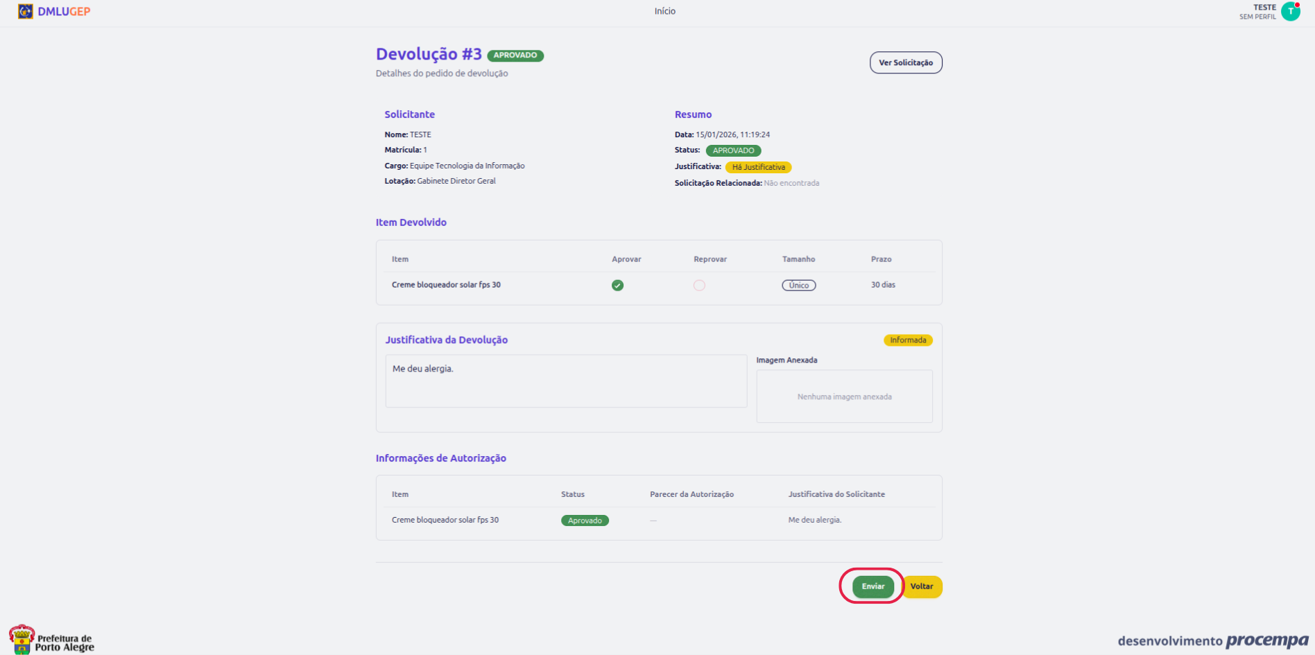 - Após a decisão, você será redirecionado para a lista de devoluções