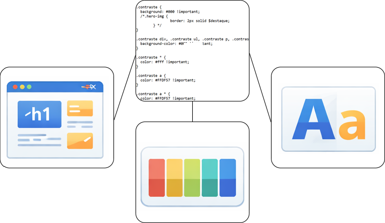 Sistema composto por cores, tipografia e elementos gráficos que define a unidade e o reconhecimento visual da marca.
