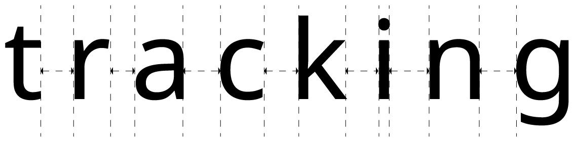 Ajuste do espaço uniforme entre todos os caracteres de um bloco de texto ou palavra.