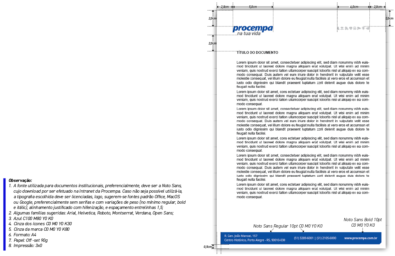 Corpo: A área de texto deve respeitar o recuo das margens laterais e superior, utilizando preferencialmente a tipografia Noto Sans ou fontes de sistema compatíveis.