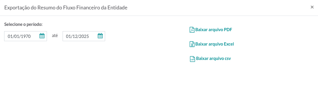 A osc poderá gerar a exportação desses dados de acordo com a periodicidade informada, nos seguintes formatos: pdf, xls e csv.